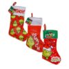 Xmas stocking grinch 45cm 3 asstd
